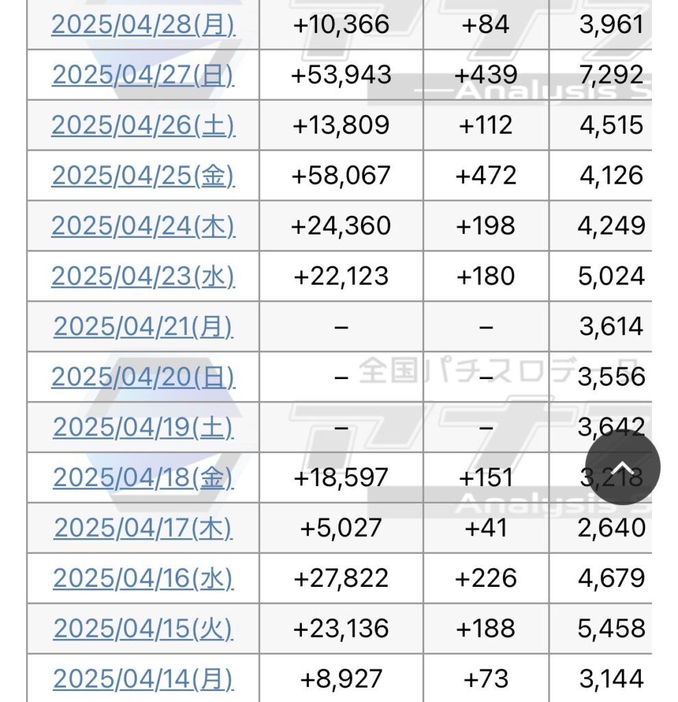 そんな思いからか、高設定は避けて、中間設定をあえて多く使ったんだと思いますが、全体としては還元とは言えない状況に終わりました。