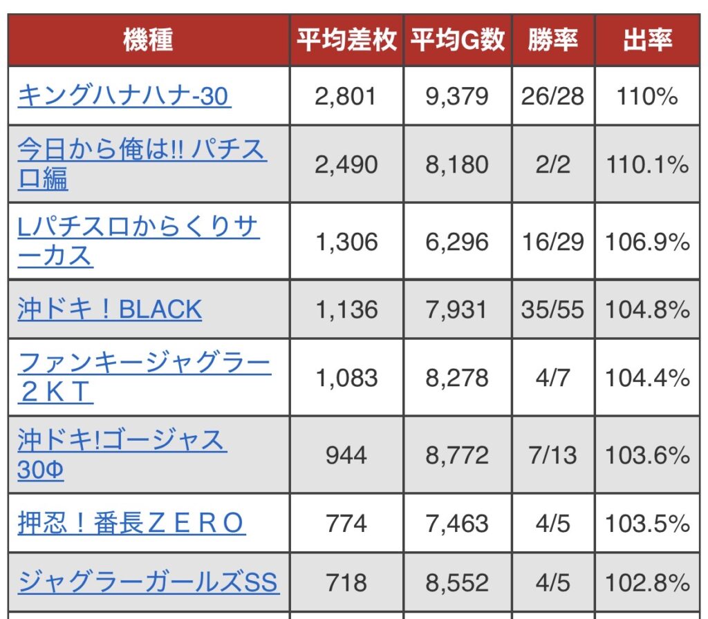 勝率は45%と高めだけど、差枚がついてない。