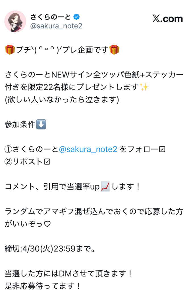 このくらいの距離感で丁寧を心がけてDMで当選をお知らせ